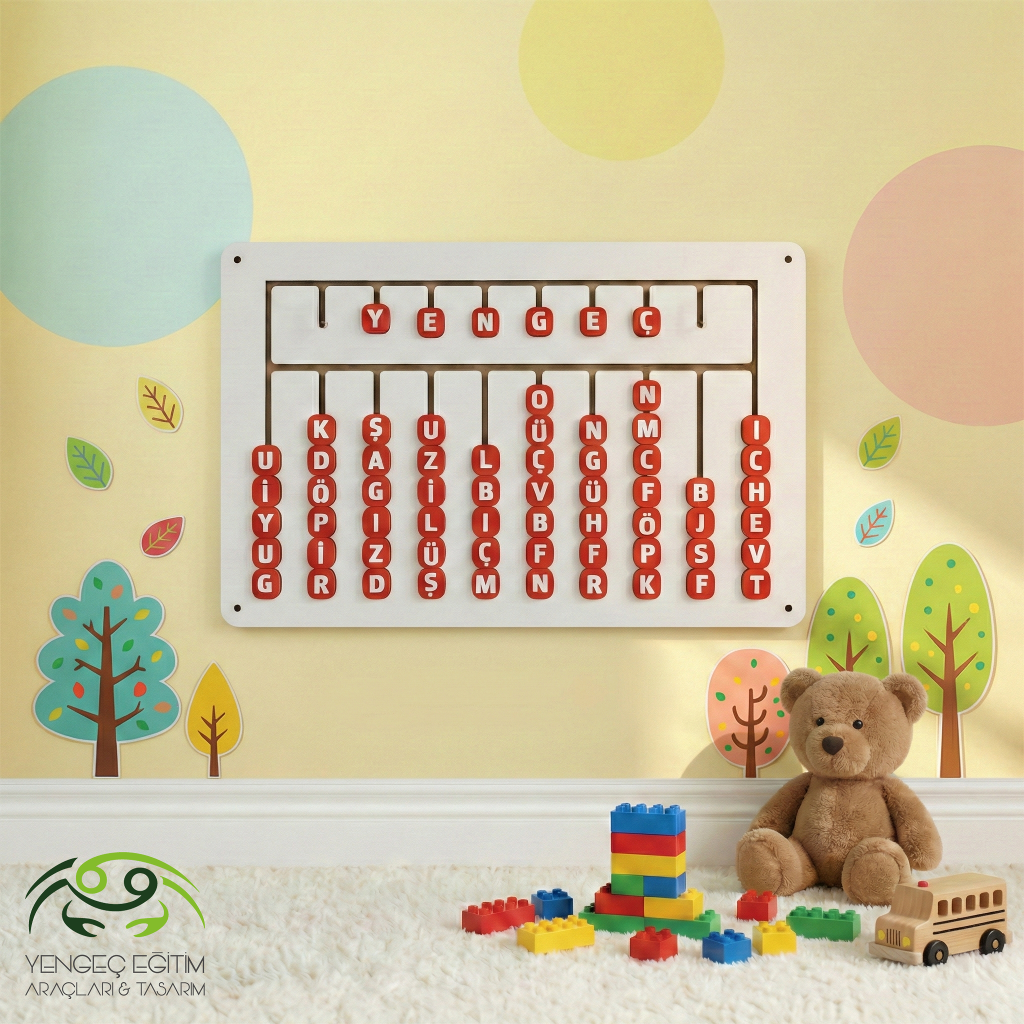 Ahşap Duvara Monte Harf ve Kelime Öğrenme Panosu – Harfleri Kaydır, Kelimeleri Kur!